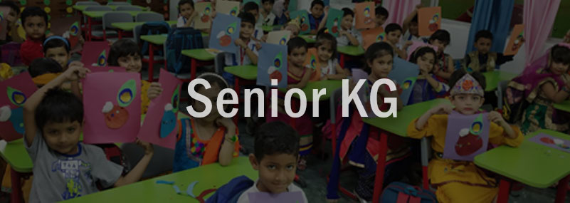 Age Group: 5-6 years. Our Senior KG program prepares children for formal schooling. It is designed for 5-6 year olds; Children develop excellent reading skills through an emphasis on consonant blend sounds. They are also introduced to ‘Addition’ & ‘Subtraction’ with the help of the concept ‘One Less’ & ‘One More’. Children are given, the opportunity to master concepts such as ascending and descending, and learn about ordinal and cardinal numbers. These activities allow children to gear up for the competitive atmosphere of formal schooling. The unique combination of fun & learning lays a concrete foundation for the children to become lifelong learners.